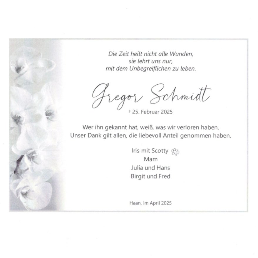 Gregor, wir kannten uns nur ein wenig und trotzdem war klar, was für ein toller Mensch du warst! Ein liebevoller Ehemann, der für die wunderbare Iris immer ein Fels in der Brandung war.