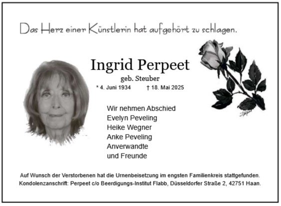 Ingrid Perpeetgestorben am 18. Mai 2025