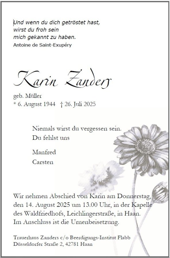 geboren am 6. August 1944 in Haan